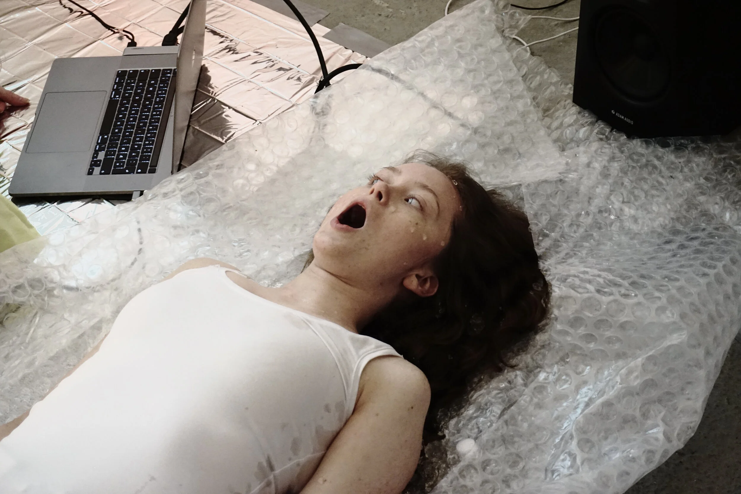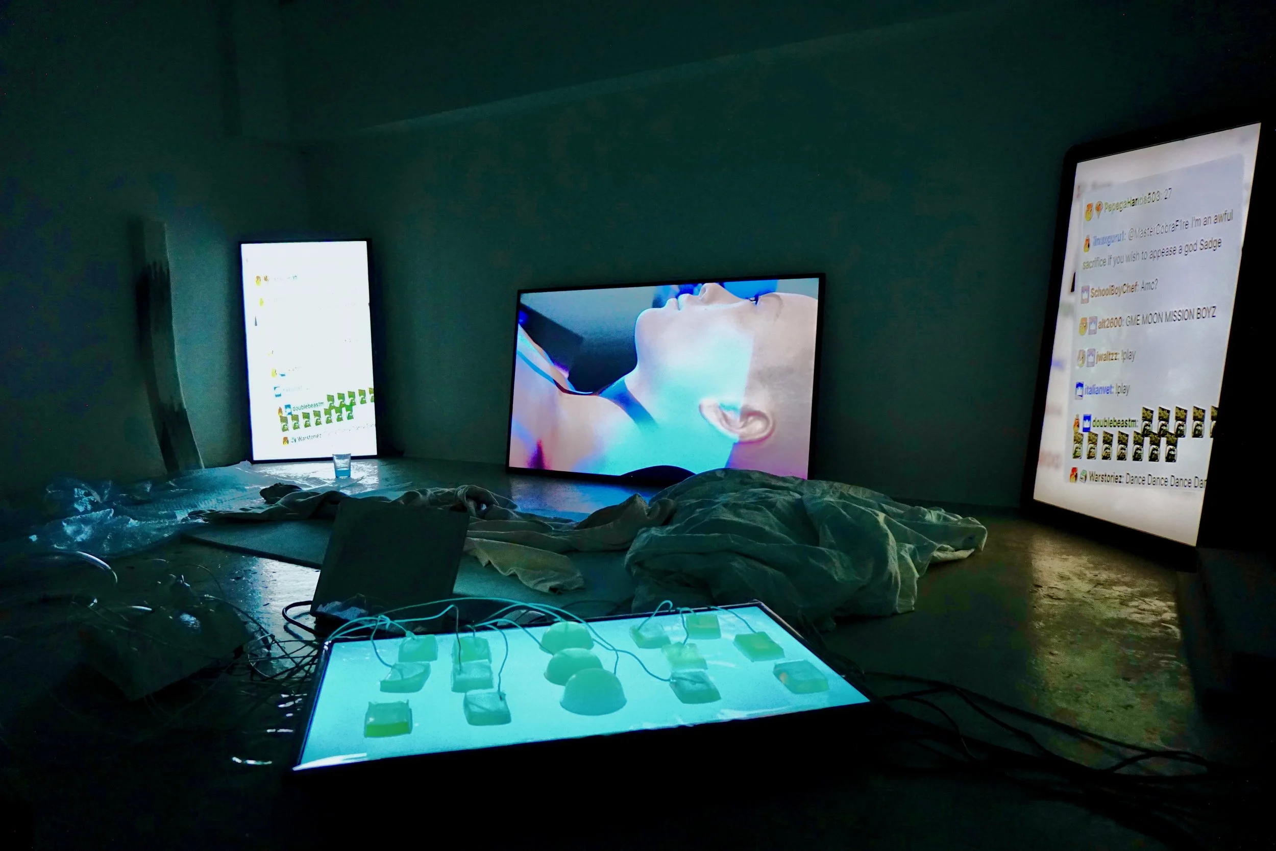 Ontolica is a multi- disciplinary performance consisting of installation, video and live- generated sound. The work explores digital ontology and the divide between physical reality and the virtual realm. Are we moving towards a place where the visual representation of ourselves and our world is becoming as important to us as reality itself, and can what we define as reality only be limited to a physical experience? In a hyper digitalized society, how important is physical contact with others and what are the consequences of eliminating it entirely from our interactions?